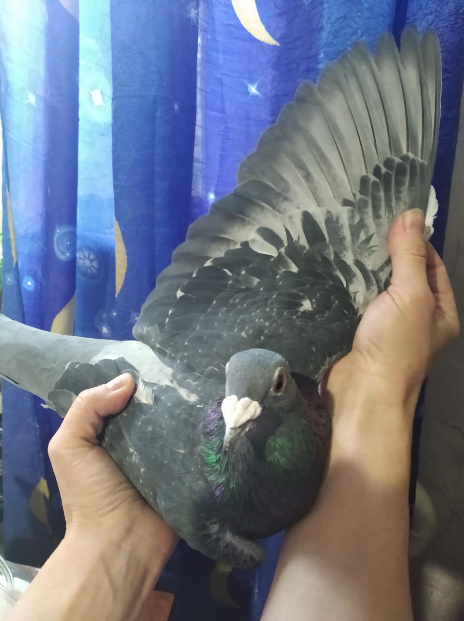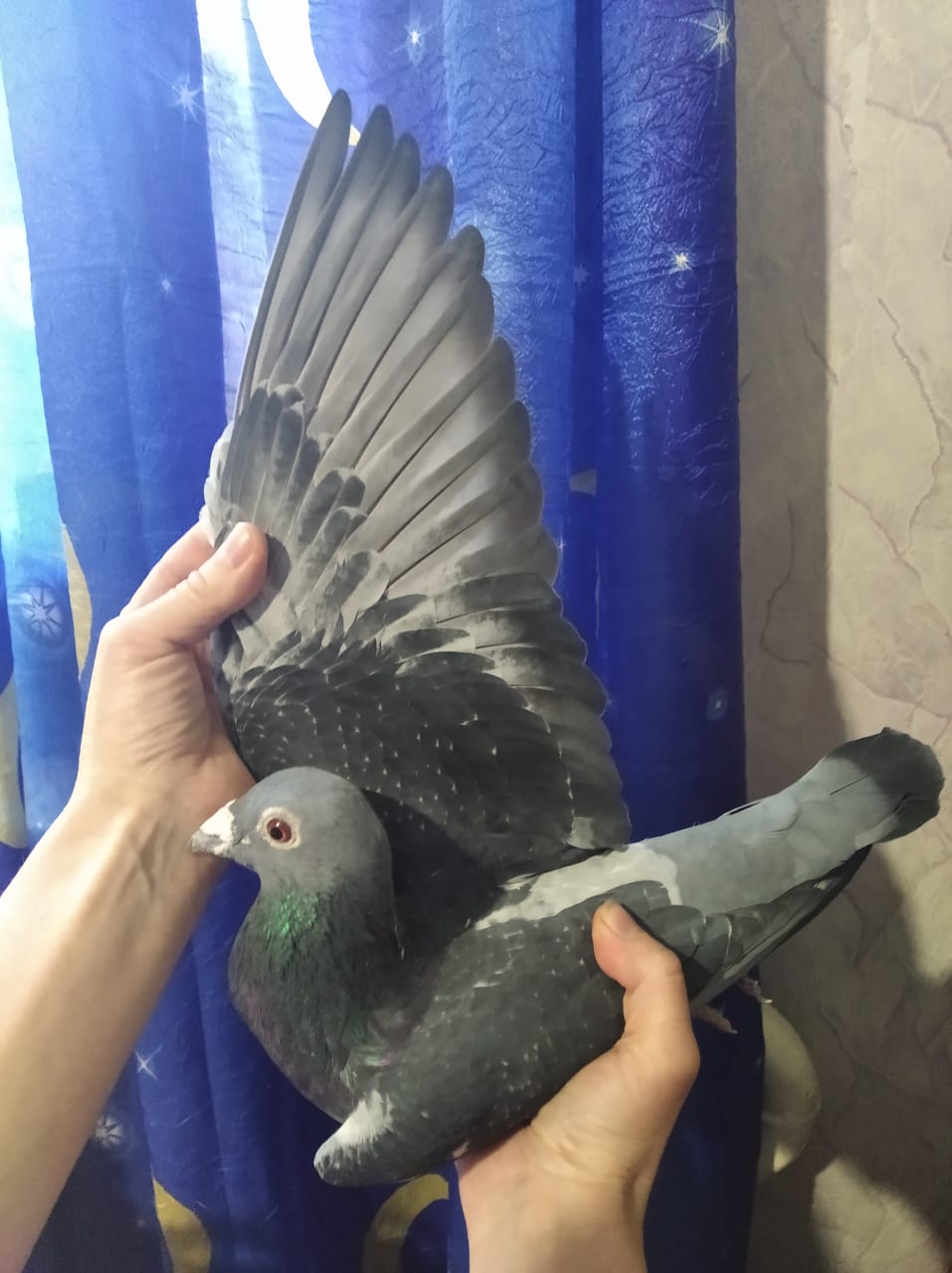 Выше я выкладывала фото своей голубки. Она потомок тех голубей, которых в свое время мне подарил МД Медведев. Я все думала, кого в пару ей дать в этом году. Поделилась своими размышлениями с Кушнаревым СН. И он предложил на сезон своего голубя, кстати, тоже потомок голубей Медведева МД.